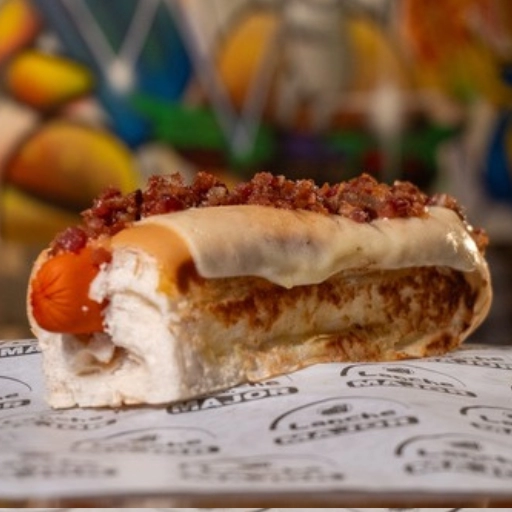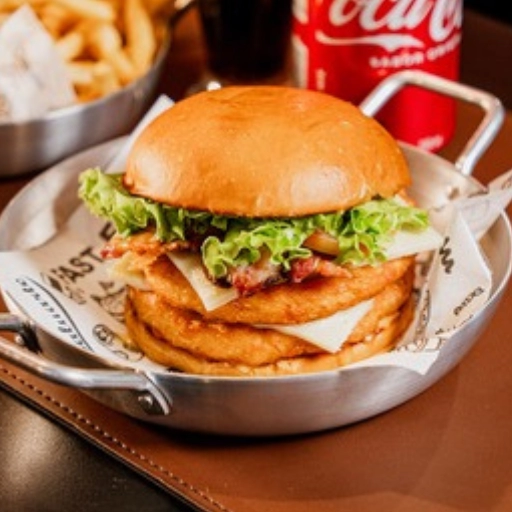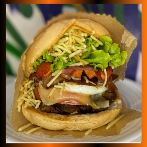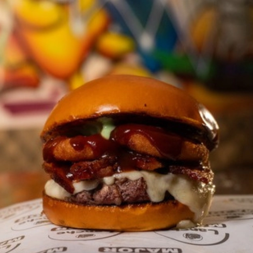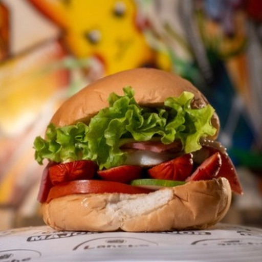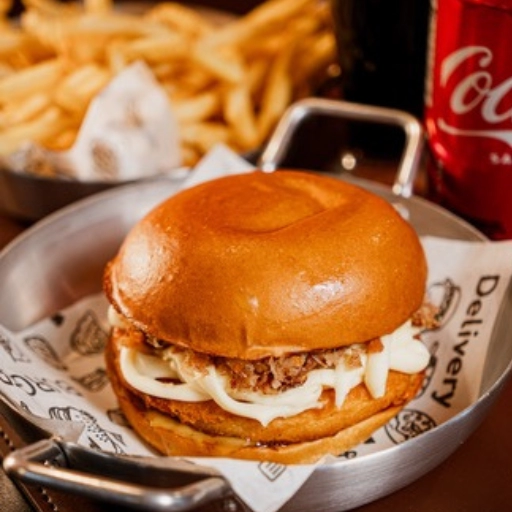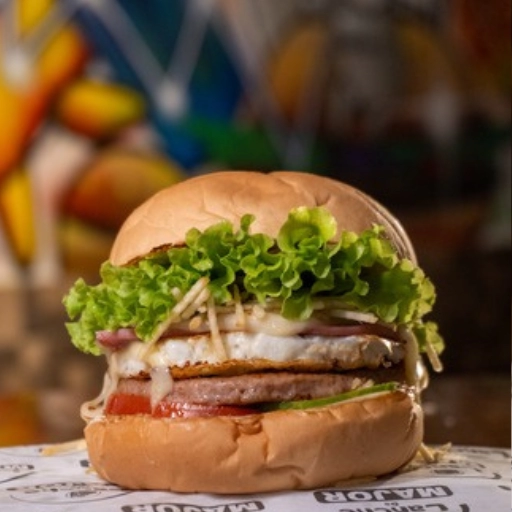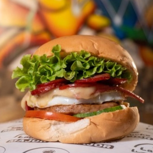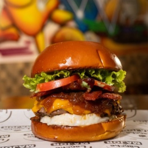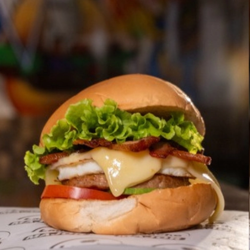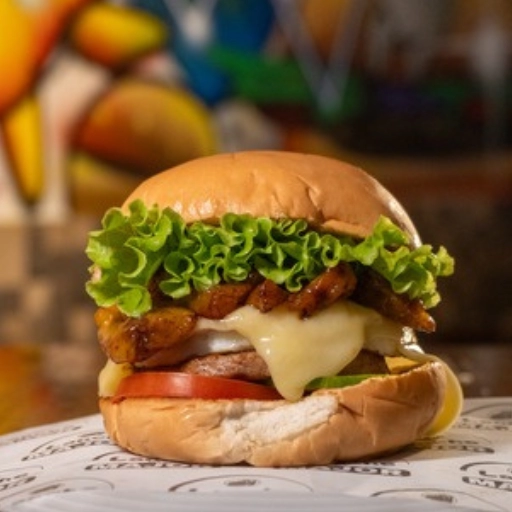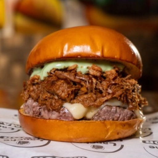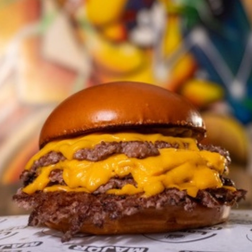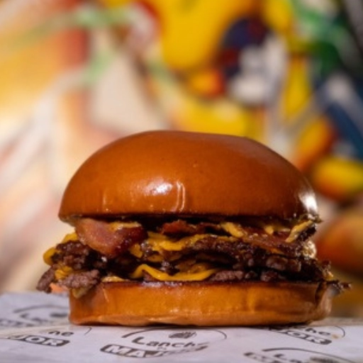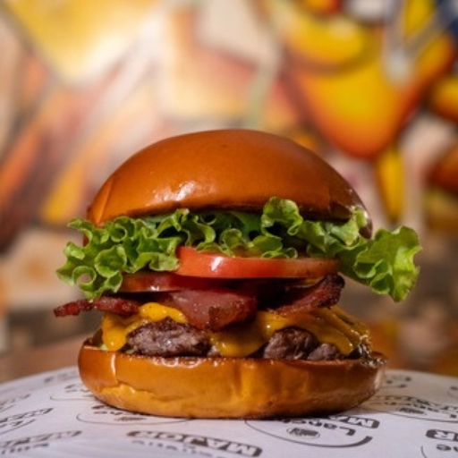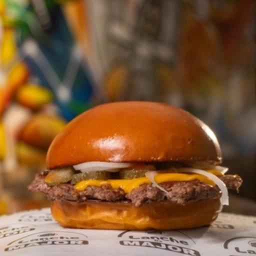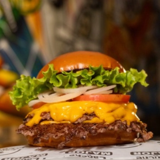 Pão brioche, 1 smash de 80g, cheddar fatiado, picles, cebola picada, katcup e mostarda.